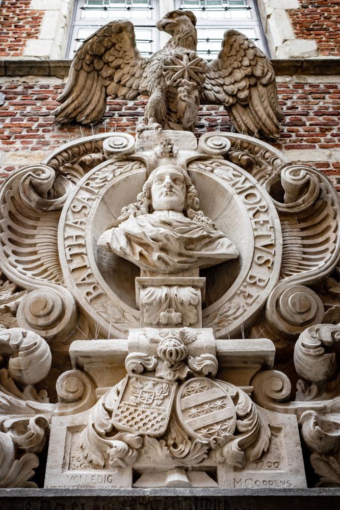 Artus I Quellien sculpted the bas-relief and logo above the entrance gate. Pauwel Dierickx, in turn, was responsible for the lion on the courtyard garden steps, as well as several elegant doorframes. The generations after Balthasar I continued to build upon this artistic legacy, including the Apollo by Gilles-Lambert Godecharles in the entrance hall and the lime wood sculptures in the library.