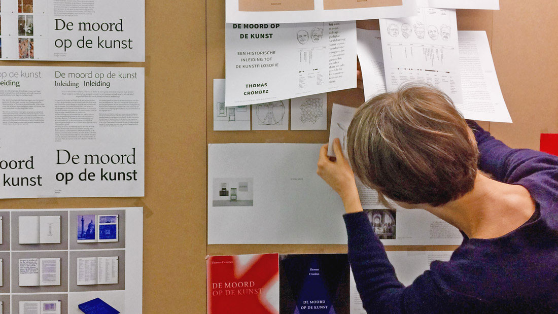 De studenten Boekontwerp werden gedurende 9 vrijdagen gecoacht doorheen het volledige ontwerpproces van één boek. Ontwerpmatig onderzochten ze hoe tekst en beeld tot één coherent geheel kunnen worden geïntegreerd waar de lezer op een heldere manier door kan navigeren. De auteur, Thomas Crombez, kwam de opdracht briefen aan de studenten: een remake van De moord op de kunst, zijn historische inleiding tot de kunstfilosofie. Johan Van Looveren, driemaal bekroond met de prijs voor Best Vormgegeven Boeken, begeleidde de studenten op hun zoektocht en deelde zijn jarenlange ervaring met hen.