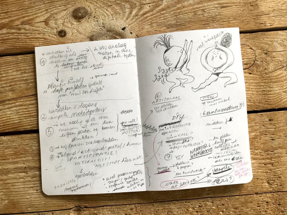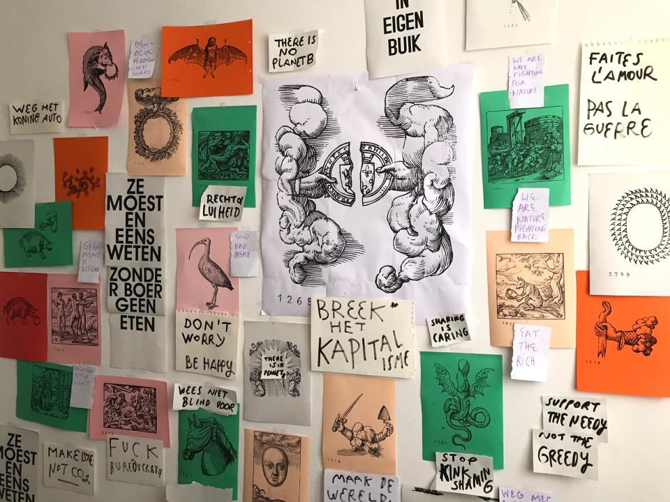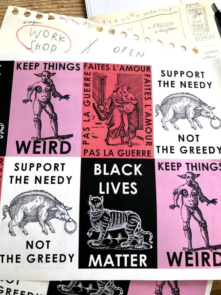 "Geruchten deden de ronde dat Plantin stiekem pamfletten voor het occulte en mystieke 't Huys der Liefde - waar hij lid van was - drukte, of allezins liet drukken in zijn drukkerij. Hij deed dit met het geld dat hij kreeg voor het drukken van bijbels. Dat inspireerde ons om zijn collectie houtblokken en drukkerij te gebruiken om tegendraadse ideeën te verspreiden, die het maatschappelijk debat kunnen aanwakkeren. Want soms heb je "radicale propaganda" - die iedereen aan het woord laat - nodig om de mensen wakker te schudden. We willen meer dan een puur visueel product maken, we zouden graag een beweging op gang brengen. Iedereen mag meedoen, mee aan het drukken slagen. Power to the people, iedereen is welkom!"