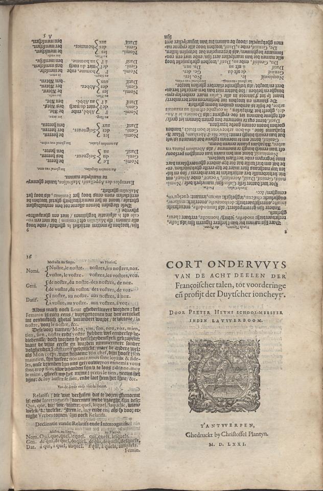 * For a recent introduction on the topic, see Alisa van de Haar, ‘Een Plantijnse grammatica herontdekt: Een onbekende editie van Peeter Heyns’ Cort onderwys (1591) komt aan het licht’ in De Gulden Passer, 98:1 (2020), 225–238.