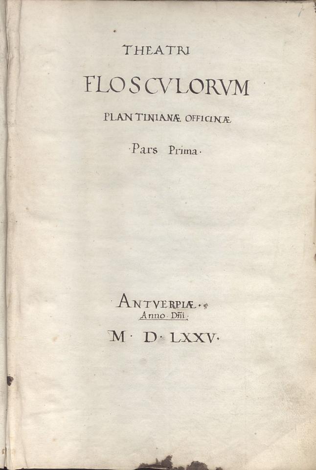 Op 1 januari 1575 presenteerde Jan Moretus een wel heel bijzonder nieuwjaarsgeschenk aan zijn werkgever en schoonvader. Uit de productie van de Officina Plantiniana van het afgelopen decennium stelde hij een staalboek van 160 edities samen. Dit komt overeen met 22% van de totale productie in deze periode volgens The Plantin Press, de bibliografie van alle Plantijndrukken van Leon Voet. Meestal beperkte Jan Moretus zich tot de eerste katernen van de edities, maar 20 dunne edities nam hij volledig in de lijvige band op. Het geheel gaf hij de Latijnse titel Theatri flosculorum Plantinianae officinae pars prima (eerste deel van het schouwtoneel van de sieraden van de Plantijnse drukkerij). De titel suggereert dat Jan Moretus de intentie had om meerdere delen samen te stellen. Voor zover we weten bleef het bij dit ‘pars prima’ (eerste deel).