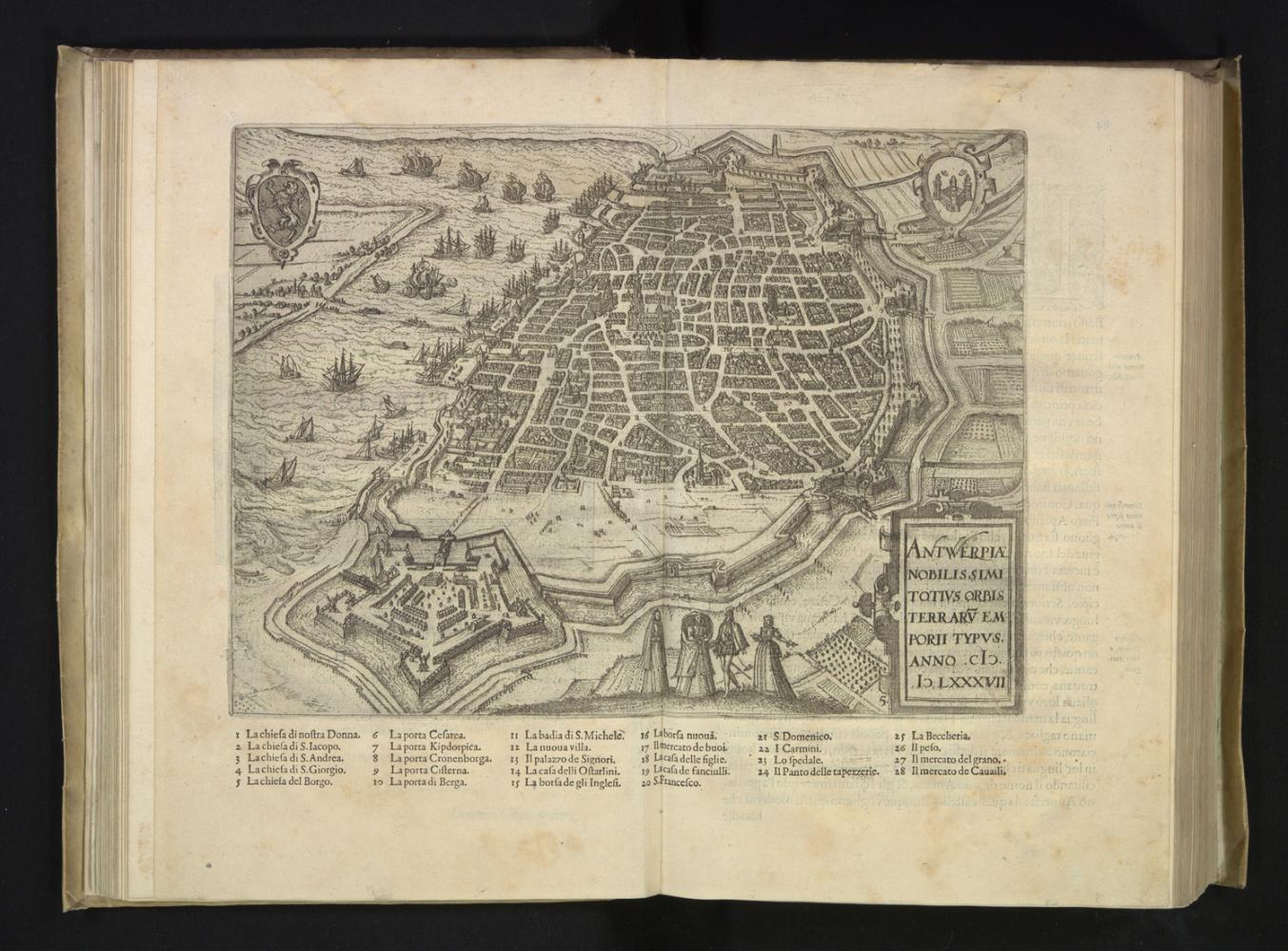 De verhalen vertellen ook hoe het uitzicht van Antwerpen veranderde op 400 jaar tijd. “Guicciardini beschrijft zijn ontsteltenis: alles is van steen! Overal is de weg verhard en staan er auto’s stil in rijen. Het groen is verdwenen: zelfs op het Laar is er geen gras of boom meer over. De hele stad is enorm gegroeid en er is overal elektriciteit en licht! Daarnaast zijn onze vanzelfsprekendheden voor hem een echte schok. Zo is er een georganiseerde eenheid als bewapende stadswacht: de politie. En er zijn treinen, een justitiepaleis en zelfs afvalscheiding, waar men zich vroeger niets van aantrok. Tot slot blijkt ook de Nederlandse taal onvergelijkbaar geëvolueerd. Guicciardini herkent de klanken nog wel, maar begrijpt er niets van. Zo toon ik opnieuw aan hoe moeilijk anderstalige nieuwkomers het hier hebben.”