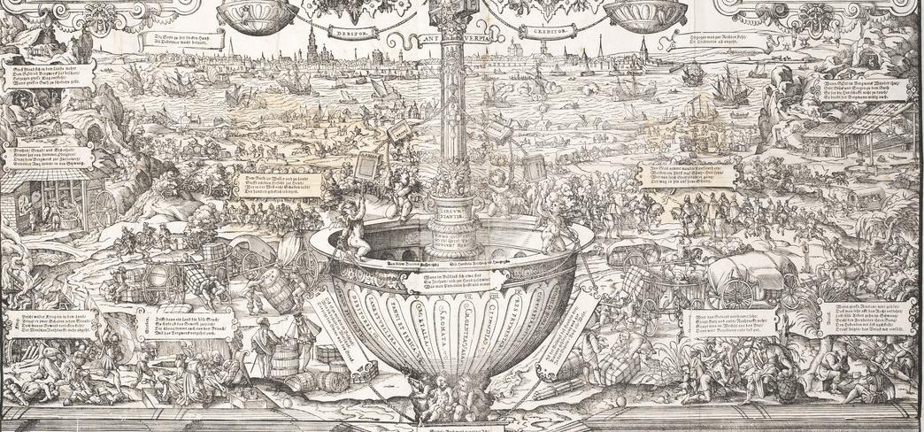 "Gij hebt economie en handel steeds goed weten plaatsen op uw eigen afgewogen manier." Jeroen Olyslaegers over de Allegorie van de handel, ca. 1585.