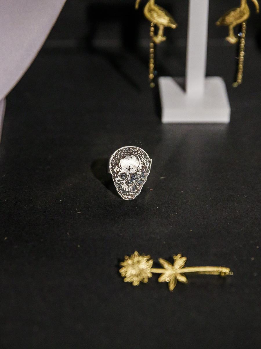 Hoe zet je de beelden om naar juwelen? Janssens: ‘er bestaan wel technieken om foto’s op metaal te zetten, maar die vonden we te beperkt. Dus zochten we verder. Het bracht ons op iets wat we vroeger al eens deden voor Jean Paul Gaultier. We werkten toen met een etstechniek om tatoeages op metaal te zetten.’
