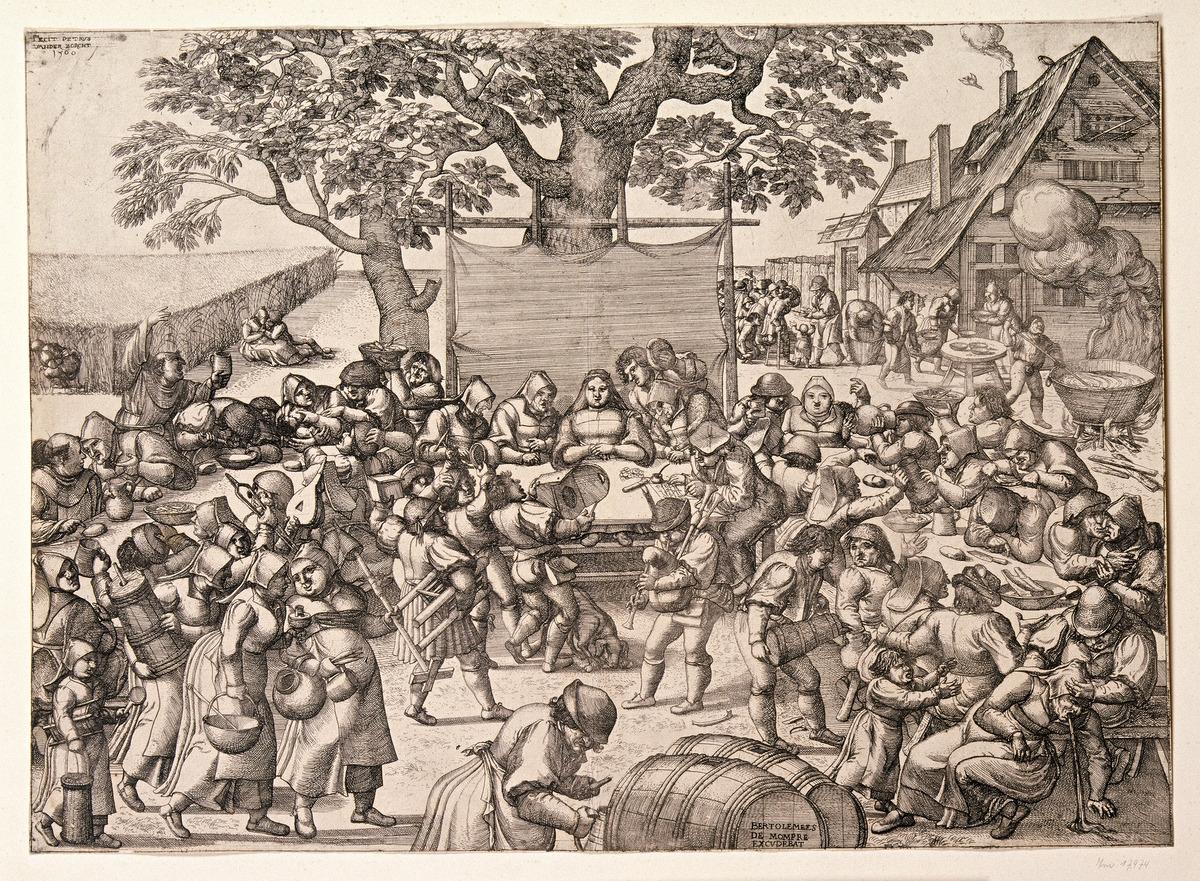 Allicht hebt gij ook het verhaal gehoord over Bruegel; dat hij zich samen met zijn maat Hans Franckert graag verkleedde als boer om dan onopvallend de vele feesten mee te maken en mensen te observeren. Wie weet waren er een paar opdrachtgevers bij die heimelijk de boeren benijdden en de eenvoud van hun bestaan dat in schril contrast staat met de handel, het wegen en het afwegen, de investeringen en de rentes, de zeeroutes en de scheepsverzekeringen, de leningen bij de bank. Dan toch liever zo’n heerlijke boerenbruiloft niet?