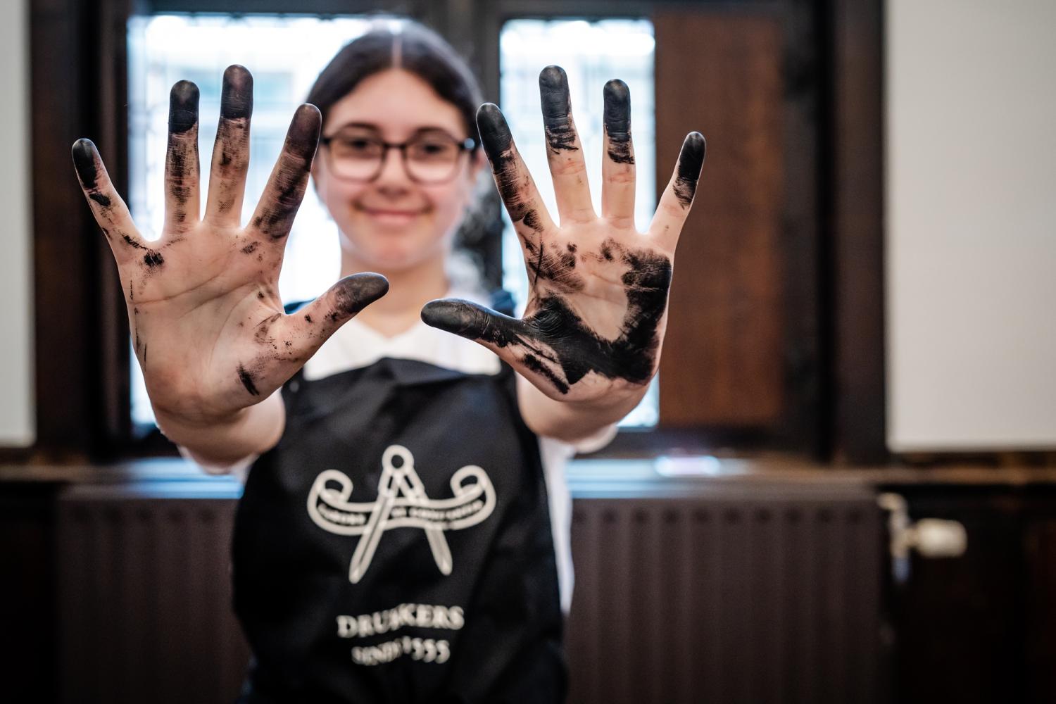 In de workshop bekijk je eerst boekillustraties, prenten en tekeningen. Nadien ga je zelf aan de slag met een plexi plaatje, inkt en een eeuwenoude drukpers en maak je je eigen droge naald ets.