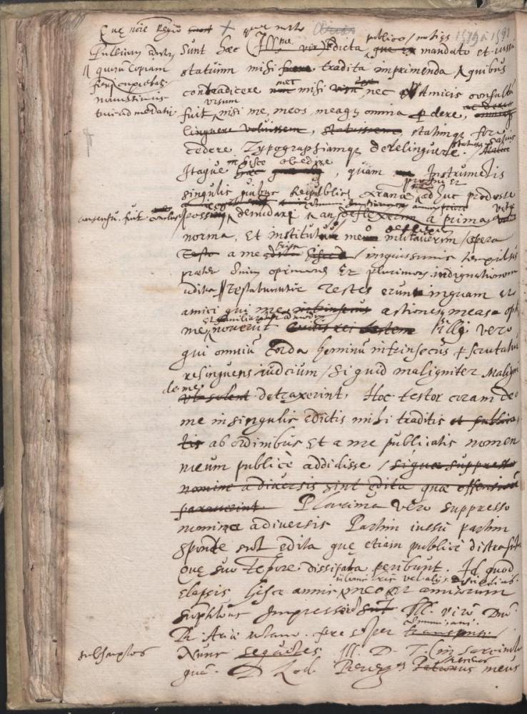 Sunt haec quae mitto, Illme Vir, edicta publica (quas nomine Regio) mihique mandato et iussu Statuum tradita imprimenda (quorum copiam cupiebas ferri novissimis tuis ad me datis) quibus contradicere nec mihi, nec amicis consultum fuit visum, nisi me, meos, meaque omnia perdere statimque fere cedere Typographiamque derelinquere statuissem. Satius itaque hisce obedire, quam instrumentis singulis quibus Reipublicae Christianae profui et adhuc prodesse possim denudari communi amicorum consensu fuit conclusum, an a prima vitae norma et instituto meo deflexerim. Opera a me hisce iniquissimis temporibus praeter omnium opinionem et plurimorum indignationem edita testabuntur. Testes erunt inquam et amici qui me actionesque meas optime et familiariter admodum noverunt, illi vero qui omnium corda hominum intrinsecus perscrutatus relinquens judicium. Si quid maligniter maligni de me detraxerint, hoc testor coram Deo me in singulis edictis milii traditis ab ordinibus et a me publicatis nomen meum publice addidisse. Plurima vero suppresso nomine a diversis, partim jussu partim sponte sunt edita quae etiam publice distrahuntur, quas suo tenipore dissipata peribunt. Id quod elapsis hisce annis in bonis litteris vel aliis disciplinis meo et amicorum sumptibus impresseram, Ill. Viro Dno B. Ariae Montano fere semper communicavi.