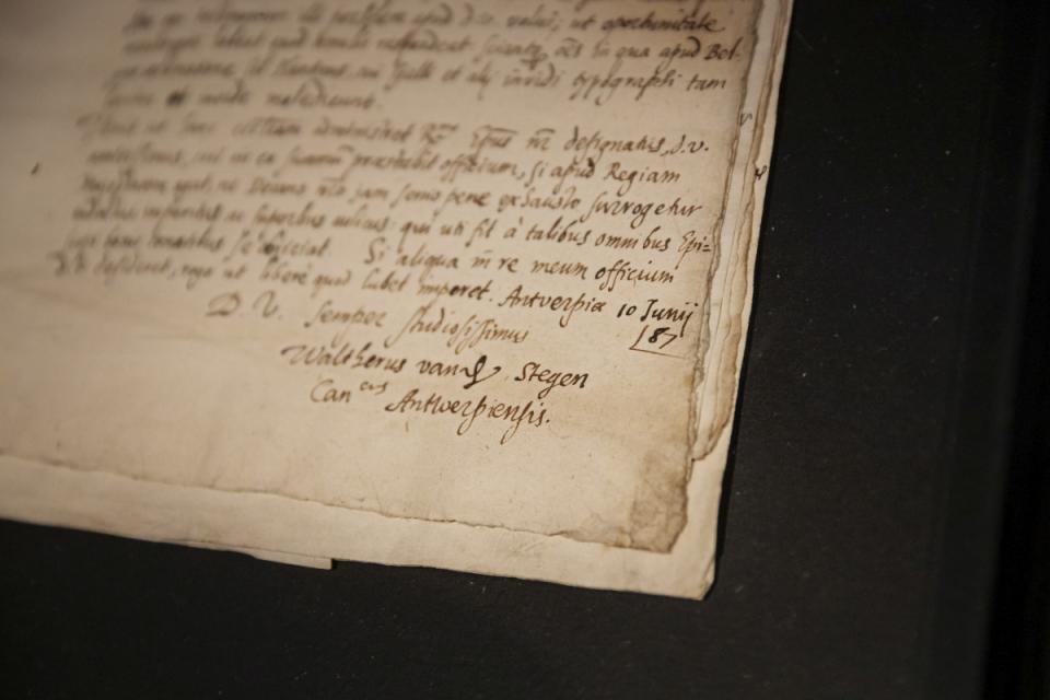 Van deze brief bestaan twee versies: een kladversie met veel correcties en twee in het net geschreven afschriften. Op sommige punten zijn er kleine verschillen tussen de kladversie en de “nette” versie. Zo is bv. de melding van Crispinus van den Broeck en zijn dochter in de kladversie: “De schilder Crispinus heeft zijn dochter [Isabella, gehuwd met Jan de Vos] ten huwelijk gegeven aan een jonge bedreven schilder die, zoals Coignet en vele anderen, van hier met zijn familie is weggetrokken. Crispinus zelf blijft hier verder schilderen en op een bescheiden manier leven”, terwijl de versie “in het net” beperkt is tot de mededeling dat Van den Broeck verder schildert zoals gewoonlijk. Plantijn besloot zijn brief met Montanus te groeten in naam van de gebruikelijke groep Antwerpse vrienden, de cartograaf Abraham Ortelius, handelaar en kunstkenner Cornelis Pruynen, prentenuitgever Filips Galle en tekenaar Peter vander Borcht.