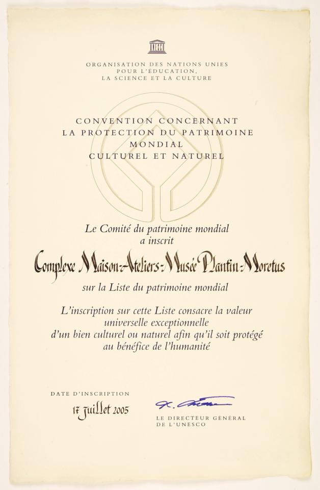 This recognition puts the Museum Plantin-Moretus in the same rank as the Pyramids in Egypt, the Palace of Versailles, the Acropolis in Athens, the Forum Romanum in Rome and other cultural sites on the UNESCO World Heritage List.