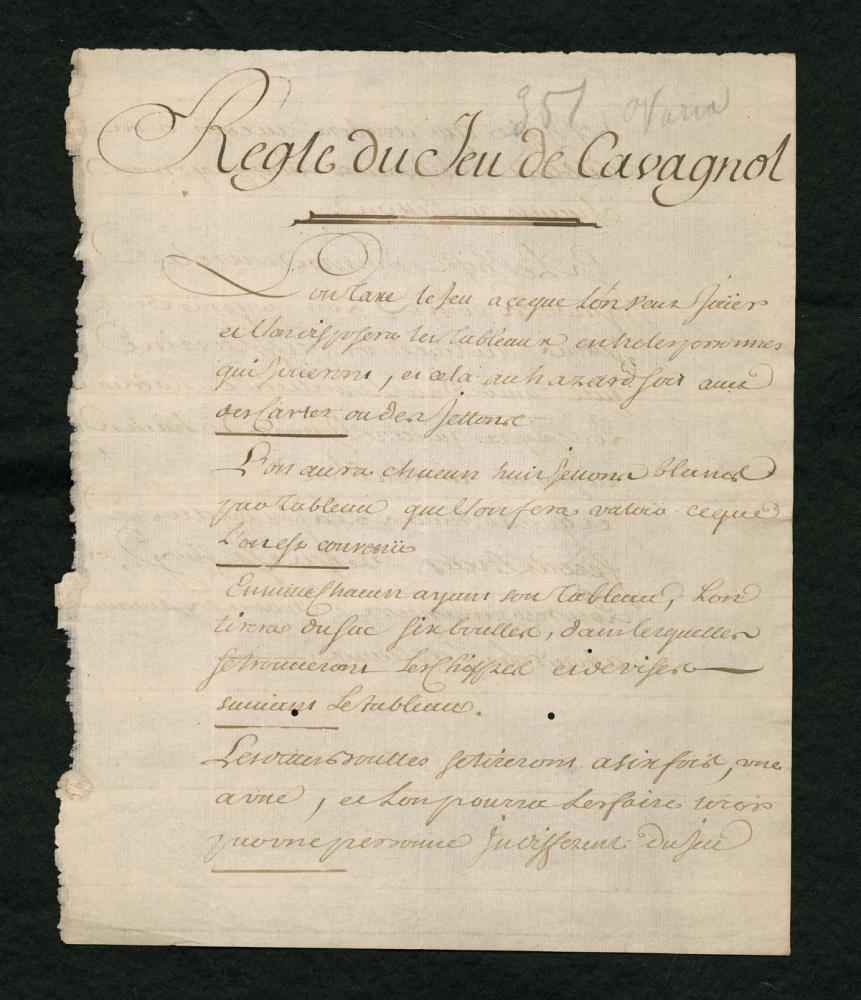 In de 18de eeuw speelde men in de betere kringen graag gezelschapsspelen. Vanuit het hof van Versailles bereikte het loterijspel cavagnole de Moretussen in Antwerpen. Onze archivaris vond de spelregels bij toeval terug in het Plantijns archief. Speel je met ons mee?