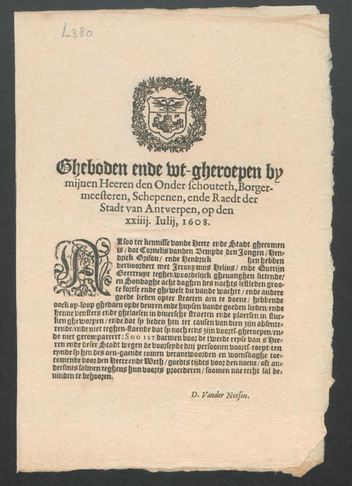Alsoo ter kennisse vande Heere ende Stadt ghecomen