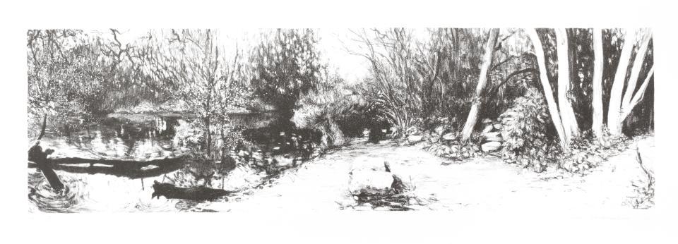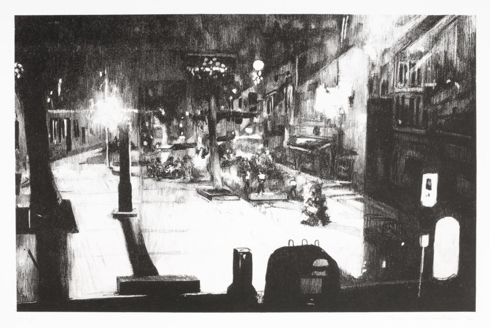 Meester in de lithografie die op subtiele wijze een onwerkelijke realiteit weergeeft. Talloze tinten grijs zijn niet altijd wat ze lijken in de straten van 't Stad.
